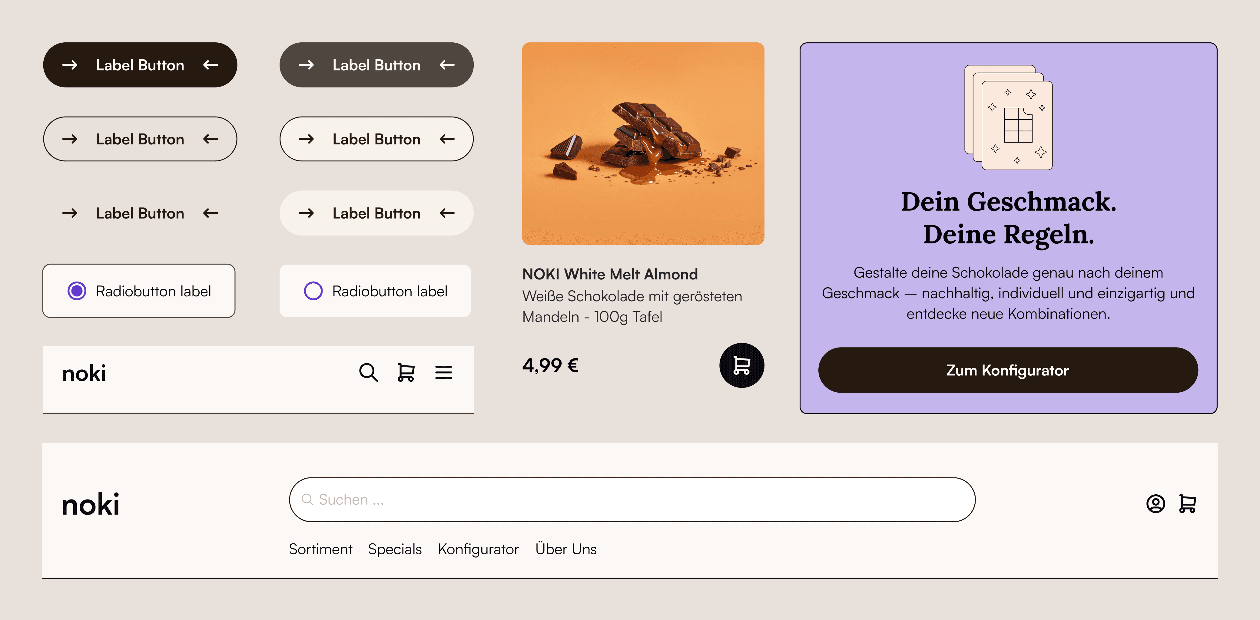 Entwicklung eines Designsystem und interaktiven Prototyps für die Schokoladenmarke Noki
